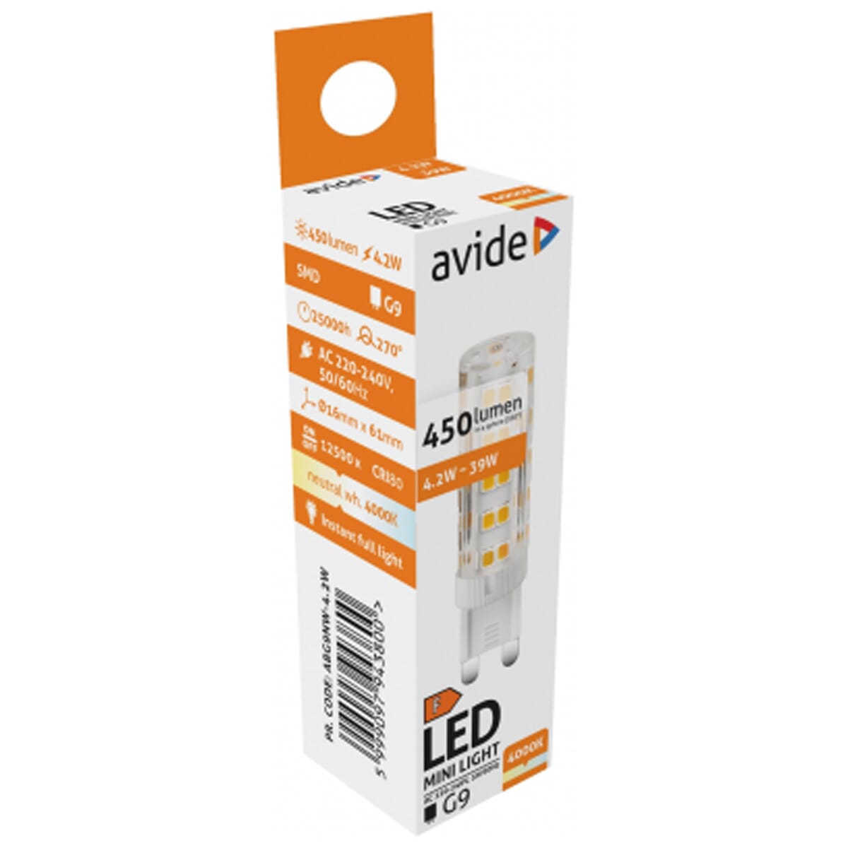Avide G9 LED Insteeklamp 4.2W 220-240V – 4000K – 450lm