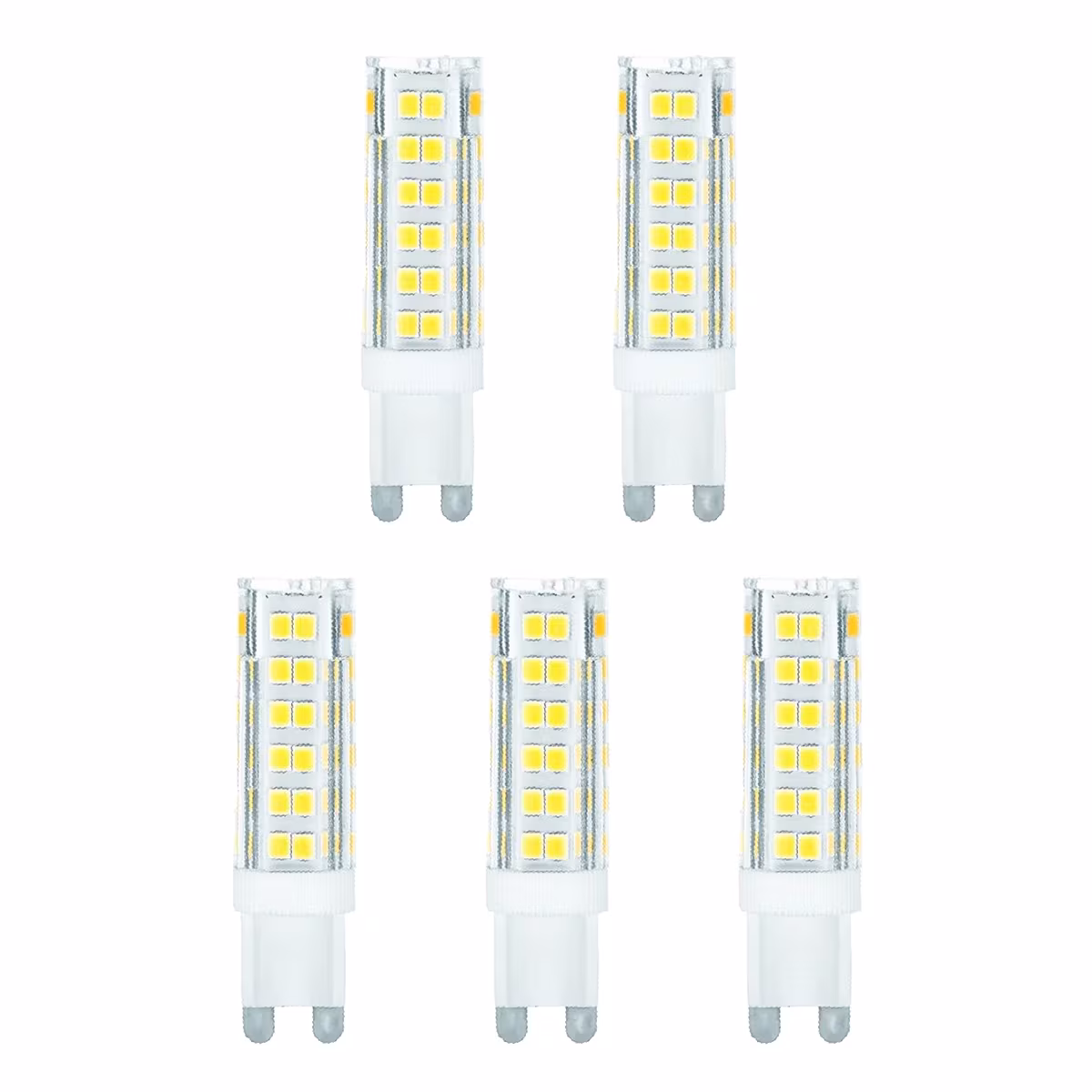 - Hoeveel lampen zitten er in één verpakking? Er zitten vijf lampen in één verpakking.