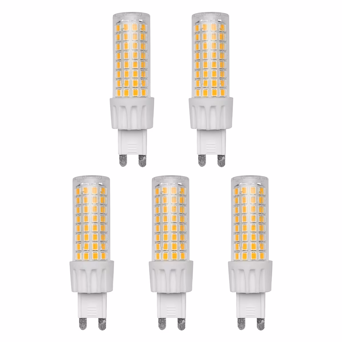 - Hoeveel lampen zitten er in een verpakking? Elke verpakking bevat 5 stuks Avide G9 LED Insteeklampen.