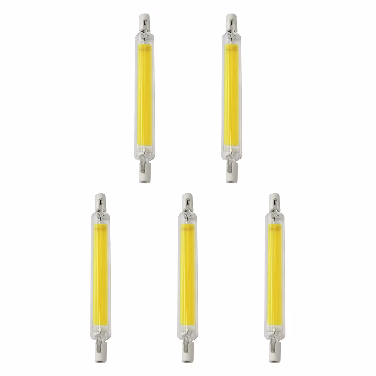- Hoeveel lampen zitten er in een verpakking? Deze set bevat 5 stuks Avide R7s LED Staaflampen.
