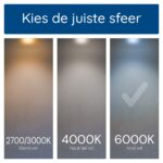 Met een kleurtemperatuur van 6000K biedt deze lamp een helder en fris koud wit licht. Dit type verlichting is ideaal voor ruimtes waar helder zicht belangrijk is, zoals werkruimtes of leeshoeken.