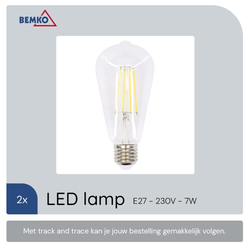 De Bemko Premium LED Lamp E27 is een energiezuinige lichtbron die ontworpen is om traditionele 70W gloeilampen te vervangen. Met een verbruik van slechts 7W biedt deze lamp een lichtopbrengst van 950 lumen, wat zorgt voor een heldere en warme verlichting van 2700K. Deze lamp is ideaal voor gebruik in woonkamers, hallen of plafondarmaturen en wordt geleverd in een set van twee stuks.