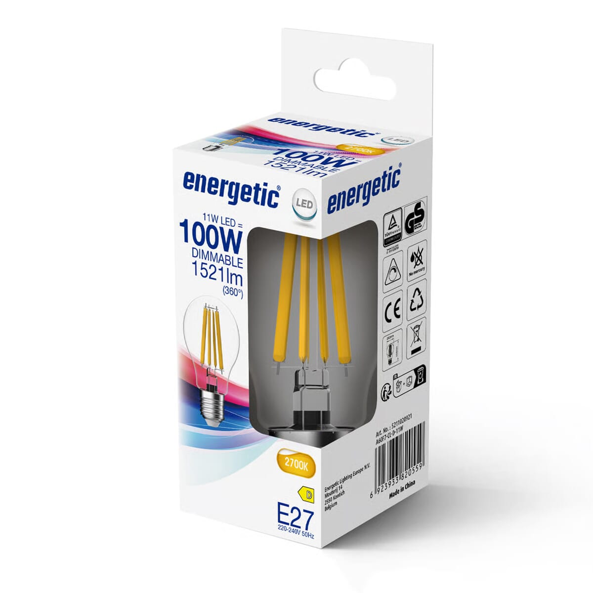Energetic LED Lamp A60 E27 11W 1521lm 2700K 230V – Helder – Warm Wit Licht