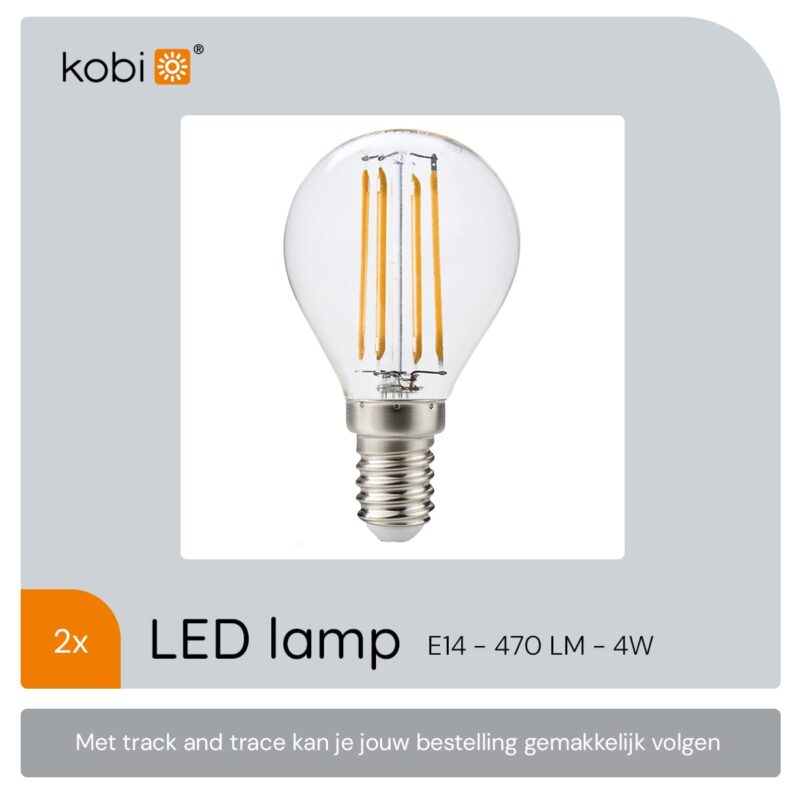 De Kobi LED Filamentlamp E14 4W is een energiezuinige lichtbron die ontworpen is om traditionele gloeilampen te vervangen. Met een vermogen van 4 watt en een lichtopbrengst van 470 lumen, biedt deze lamp een warm wit licht van 3000K. De lamp heeft een kaarsvorm en is geschikt voor gebruik in kroonluchters, slaapkamers of wandlampen. Deze set bevat twee lampen, ideaal voor het verlichten van verschillende ruimtes in huis.