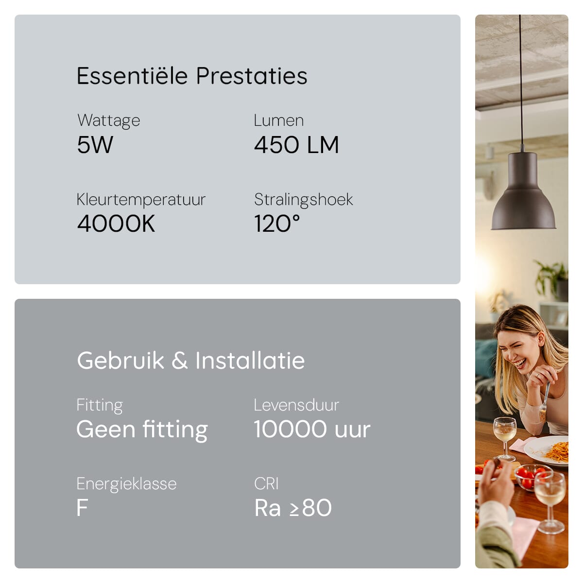 - Kleurtemperatuur: 4000K Neutraal Wit