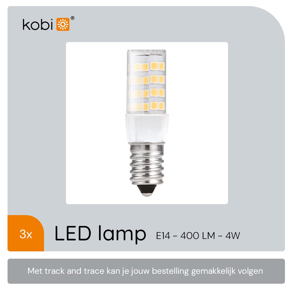 De Kobi LED Lamp E14 4.2W is een energiezuinige lichtbron die geschikt is voor smalle buisarmaturen of compacte wandlampen. Met een helderheid van 400 lumen en een kleurtemperatuur van 4000K biedt deze lamp een neutraal wit licht, ideaal voor zowel functionele als decoratieve verlichting. De lamp werkt op een standaard netspanning van 230V en is ontworpen in een staafvorm, waardoor hij perfect past in diverse armaturen.