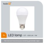 De Kobi LED Lamp E27 11W is een energiezuinige lichtbron die geschikt is voor diverse toepassingen in huis, zoals de woonkamer, hal of plafondarmaturen. Met een lichtopbrengst van 1050 lumen en een kleurtemperatuur van 3000K, biedt deze lamp een warm wit licht dat ideaal is voor het creëren van een gezellige sfeer. Deze set bevat vijf lampen, waardoor je meerdere ruimtes in huis kunt verlichten.