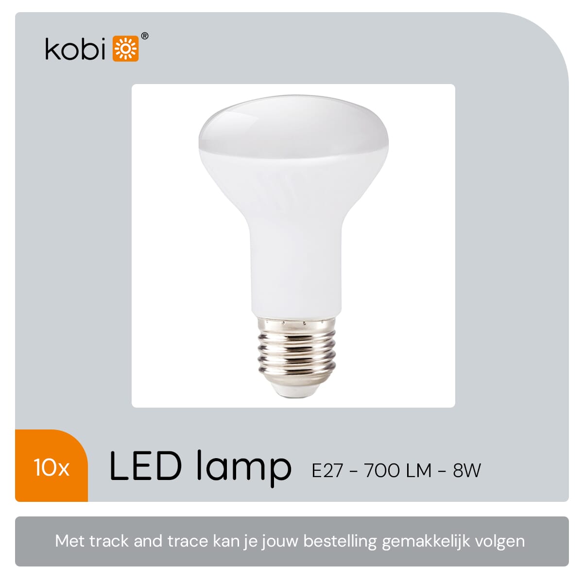 De Kobi LED Reflectorlamp R63 E27 8W is een energiezuinige verlichtingsoplossing die ideaal is voor grote ruimtes zoals werkplaatsen en winkels. Met een helderheid van 700 lumen en een kleurtemperatuur van 4000K biedt deze lamp een neutraal wit licht dat geschikt is voor diverse toepassingen. Deze set bevat 10 stuks, waardoor je meerdere lampen tegelijk kunt installeren voor een consistente verlichting.