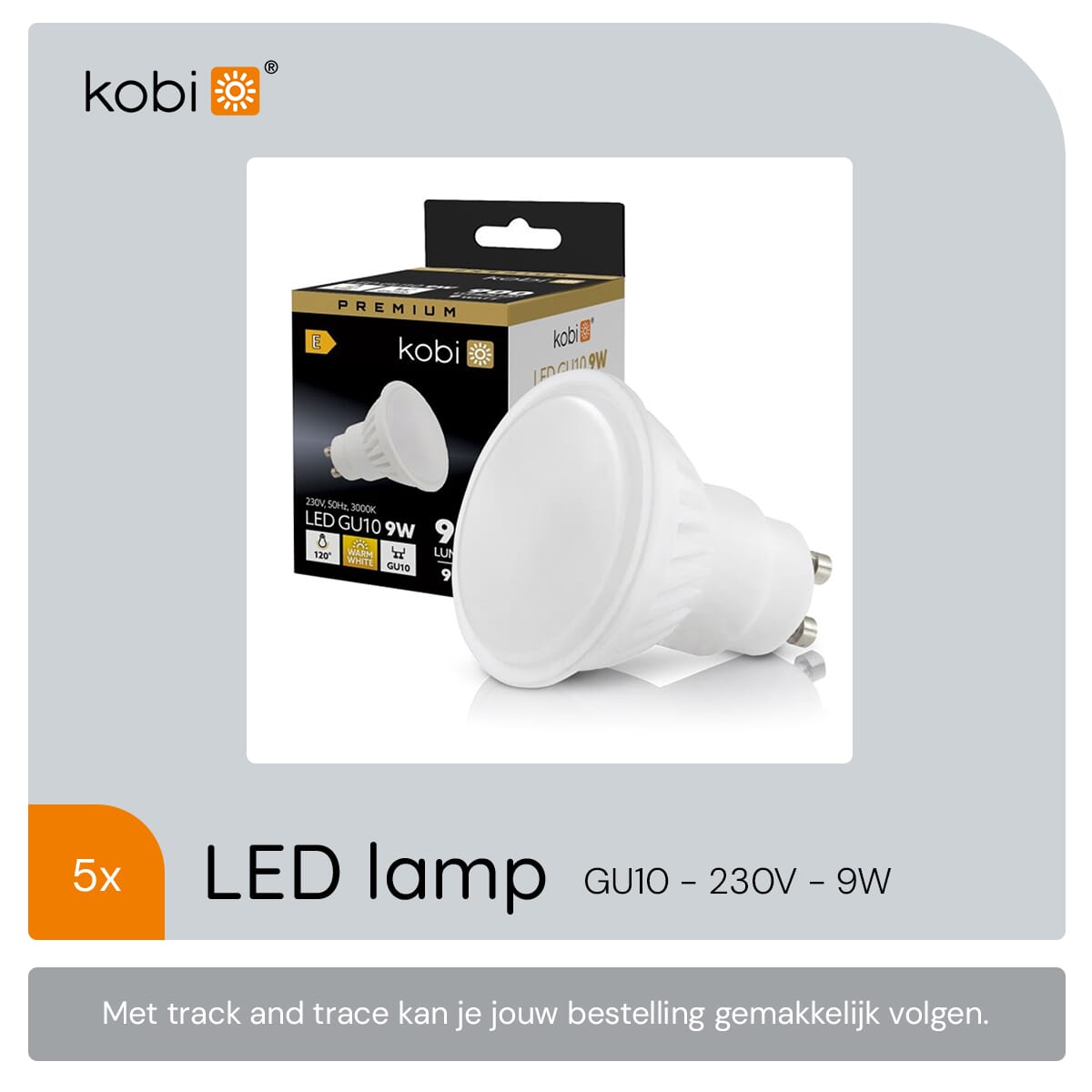 De Kobi Premium LED Lamp GU10 is een energiezuinige verlichtingsoplossing die ideaal is voor werkverlichting, spiegelkasten of garages. Met een vermogen van 9 watt en een lichtopbrengst van 900 lumen biedt deze lamp helder en warm wit licht van 3000K. De lamp werkt op 230V en heeft een diameter van 50mm, waardoor hij geschikt is voor diverse armaturen.