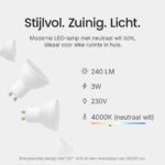 De LED line LED Spot GU10 is ontworpen met energie-efficiëntie in gedachten. Met een verbruik van slechts 3W bespaart deze spot aanzienlijk op energiekosten in vergelijking met traditionele halogeenlampen van 20W.