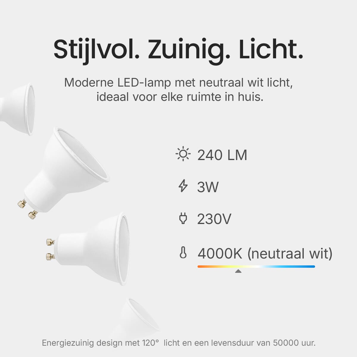 De LED line LED Spot GU10 verbruikt slechts 3W, wat aanzienlijk minder is dan de traditionele 20W halogeenlampen. Dit maakt het een kosteneffectieve keuze voor wie zijn energierekening wil verlagen zonder in te boeten op lichtkwaliteit.