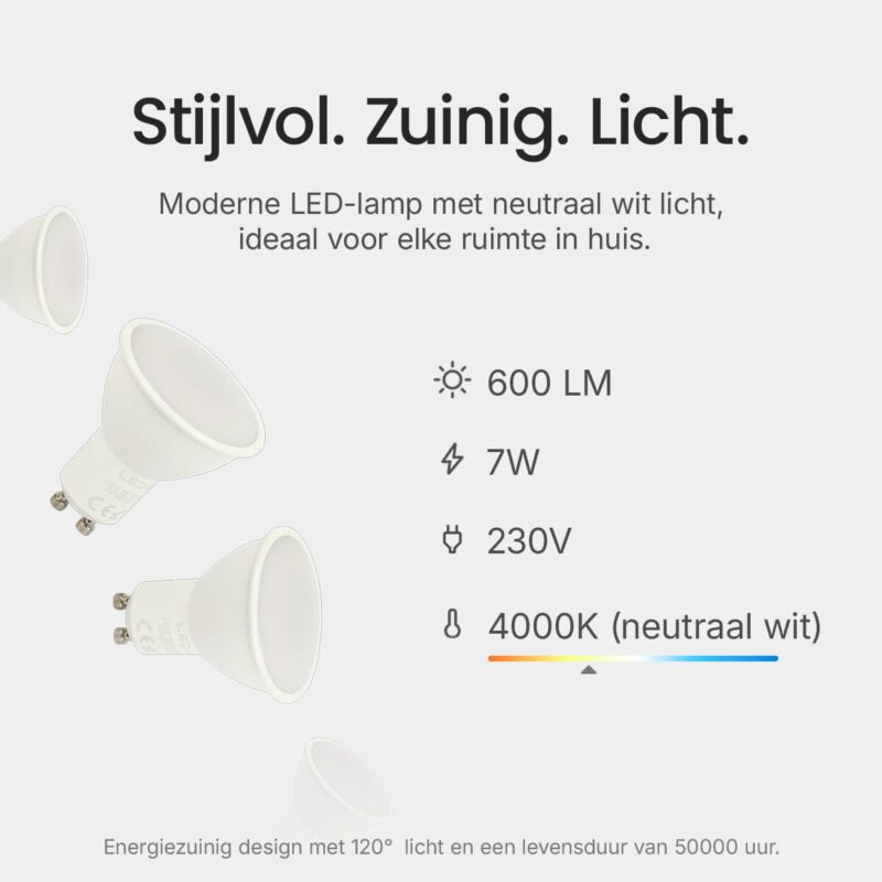 De LED line LED Spot GU10 – 7W verbruikt slechts 7 watt, wat aanzienlijk minder is dan de traditionele 40W halogeenlampen. Dit maakt het een kosteneffectieve keuze voor wie zijn energierekening wil verlagen zonder in te boeten op lichtkwaliteit.