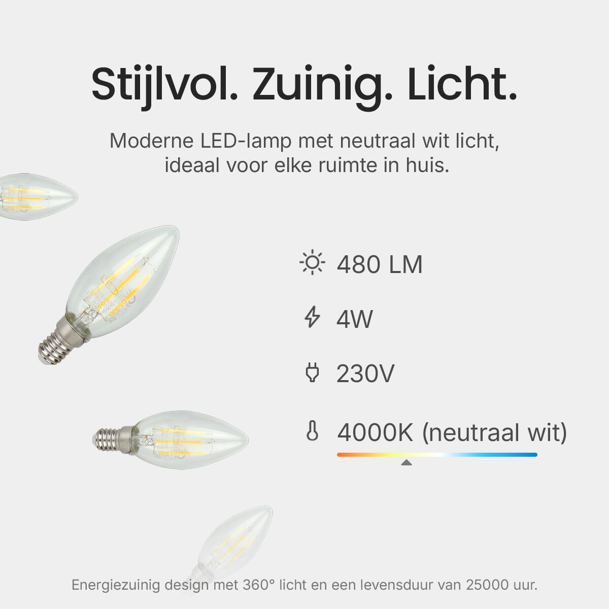 De LED line LITE kaarslamp is ontworpen met energie-efficiëntie in gedachten. Met een verbruik van slechts 4W bespaart deze lamp aanzienlijk op energiekosten in vergelijking met traditionele gloeilampen. Dit maakt het een milieuvriendelijke keuze voor huishoudens en bedrijven.