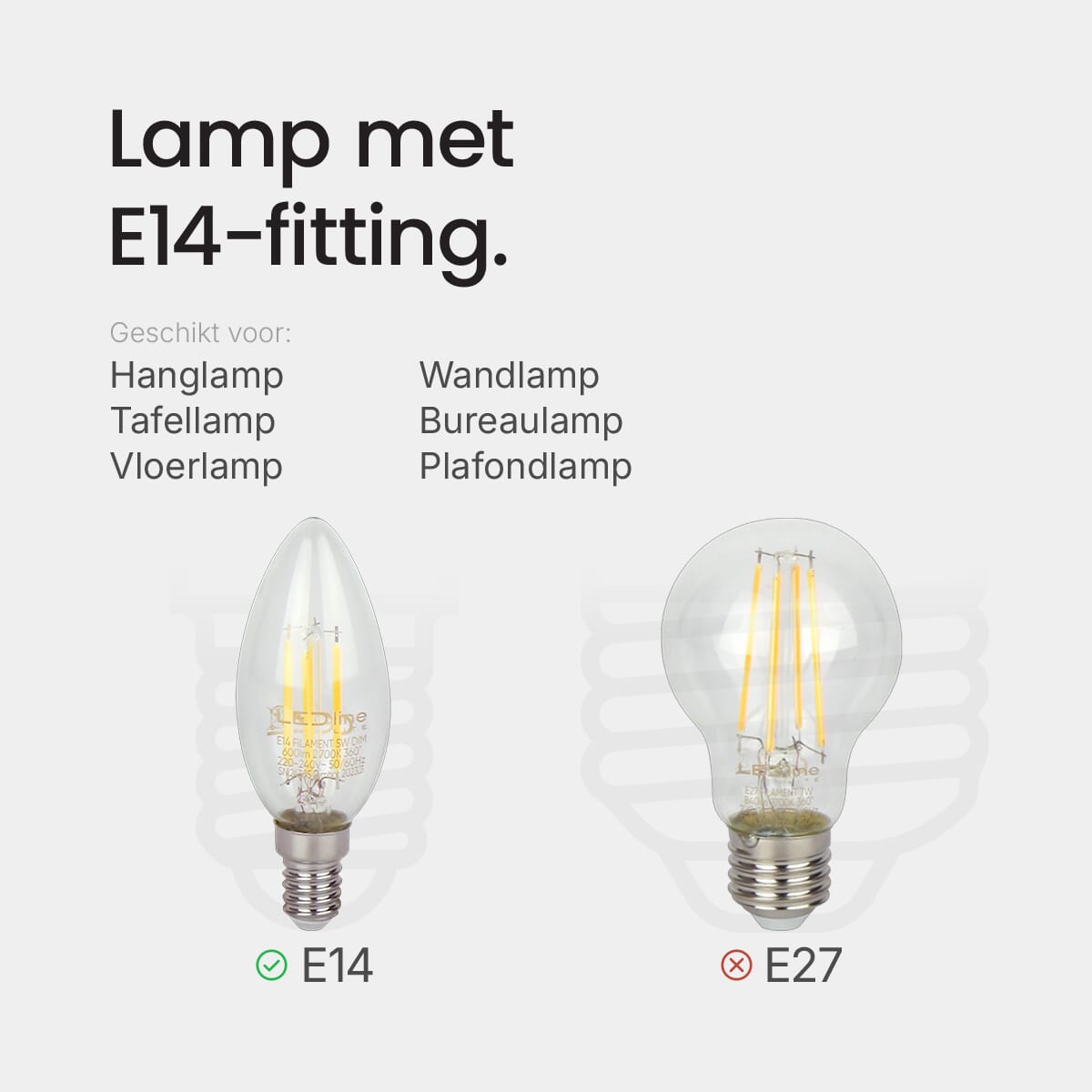 Met een E14 fitting is de LED line LITE LED Filament Kaarslamp compatibel met een breed scala aan armaturen. De lamp is ideaal voor gebruik in zowel residentiële als commerciële omgevingen, zoals woonkamers, eetkamers en restaurants.