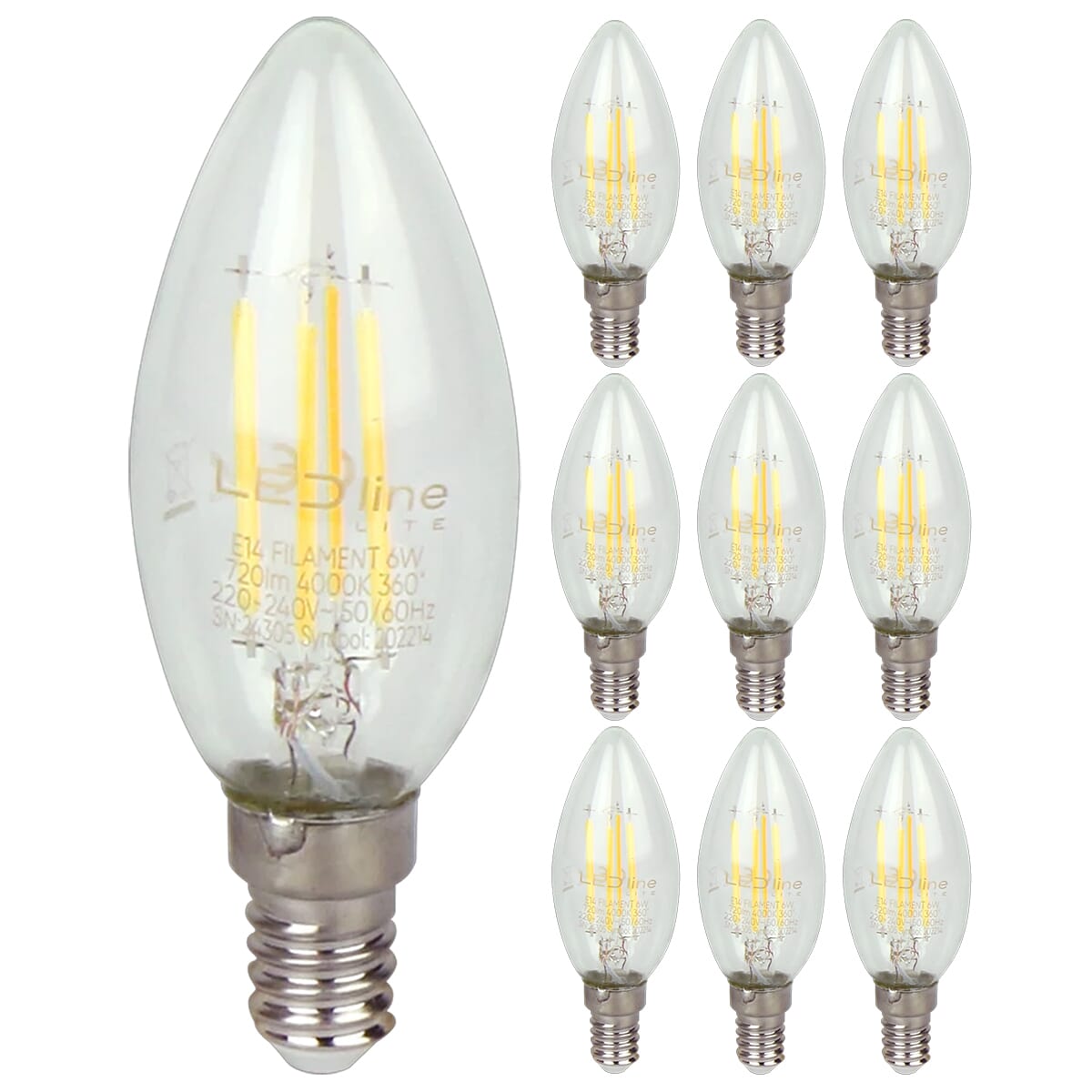 De LED line LITE LED Filament Kaarslamp C35 E14 is een energiezuinige lichtbron die ontworpen is om traditionele 60W gloeilampen te vervangen. Deze lamp heeft een vermogen van 6W en levert een lichtopbrengst van 720 lumen. Met een diameter van 35mm en een standaard E14 fitting, is deze lamp geschikt voor diverse armaturen in huiselijke en commerciële omgevingen.