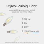 De LED line LITE kaarslamp is ontworpen om energie te besparen zonder in te boeten op helderheid. Met een verbruik van slechts 6W biedt deze lamp een aanzienlijke besparing op de energierekening in vergelijking met traditionele 60W gloeilampen.