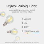 Met een lichtopbrengst van 480 lumen biedt deze LED filament lamp helder en sfeervol licht, perfect voor woonkamers, slaapkamers en andere leefruimtes waar een warme ambiance gewenst is.