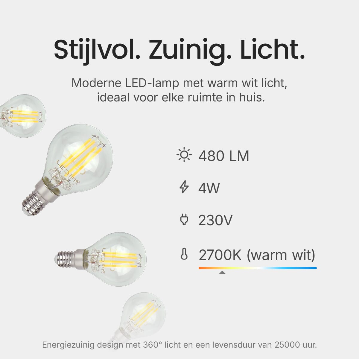 De LED line LITE kogellamp is ontworpen met energie-efficiëntie in gedachten. Met een verbruik van slechts 4W bespaart deze lamp aanzienlijk op energiekosten in vergelijking met traditionele gloeilampen van 40W.