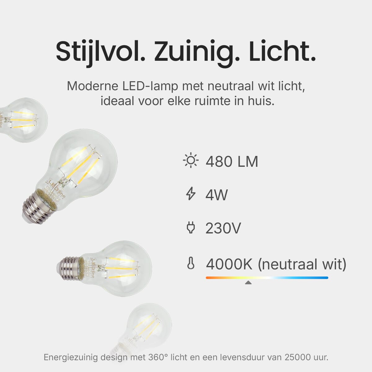 Met een lichtopbrengst van 480 lumen biedt deze LED lamp een helder en consistent licht dat ideaal is voor zowel residentiële als commerciële omgevingen. De filamenttechnologie zorgt voor een warme en aangename lichtkleur, vergelijkbaar met die van traditionele gloeilampen.