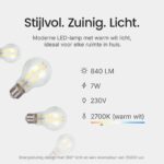 Met een lichtopbrengst van 840 lumen biedt deze lamp helder en consistent licht. De dimbare functie maakt het mogelijk om de sfeer in een ruimte eenvoudig aan te passen, van helder werklicht tot een zachte, gezellige gloed.