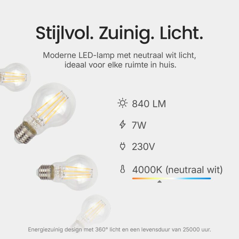 Met een lichtopbrengst van 840 lumen biedt deze lamp een helder en consistent licht, ideaal voor zowel functionele als sfeerverlichting in diverse ruimtes.