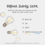 De LED line LITE LED Filament Lamp A60 E27 is een energiezuinige verlichtingsoplossing die ontworpen is om traditionele 70W gloeilampen te vervangen. Met een vermogen van slechts 7W biedt deze lamp een helderheid van 840 lumen, wat zorgt voor een efficiënte en duurzame verlichting in huis of op kantoor. De lamp heeft een diameter van 60mm en werkt op een standaard 230V aansluiting, waardoor hij eenvoudig te installeren is in bestaande armaturen.