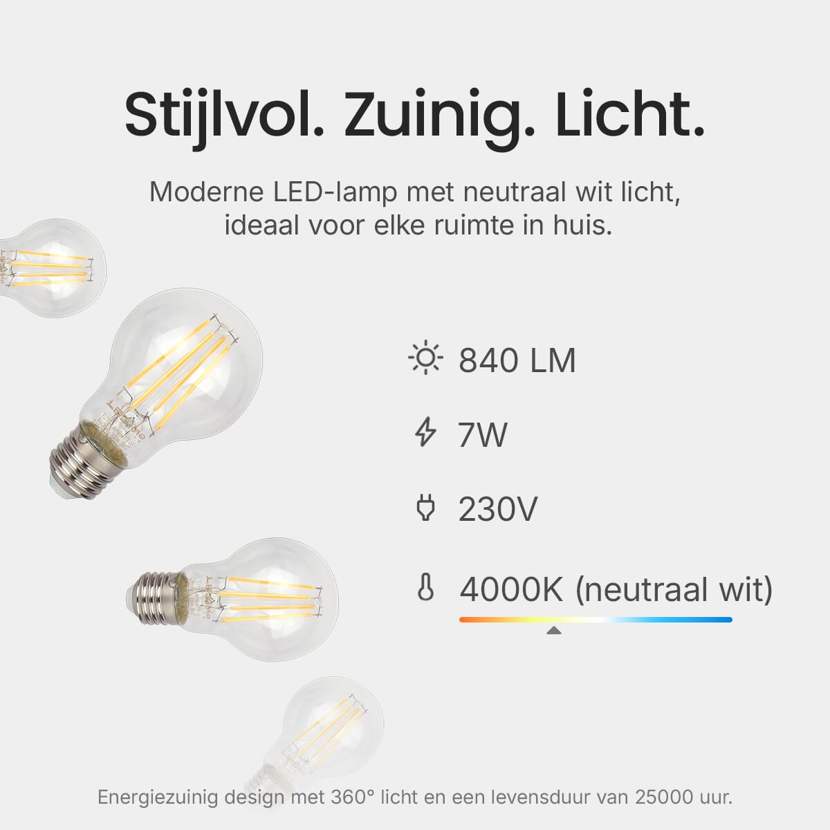 Met een lichtopbrengst van 840 lumen biedt deze lamp een helder en consistent licht, ideaal voor zowel woon- als werkruimtes. De filamenttechnologie zorgt voor een warme en aangename sfeer.