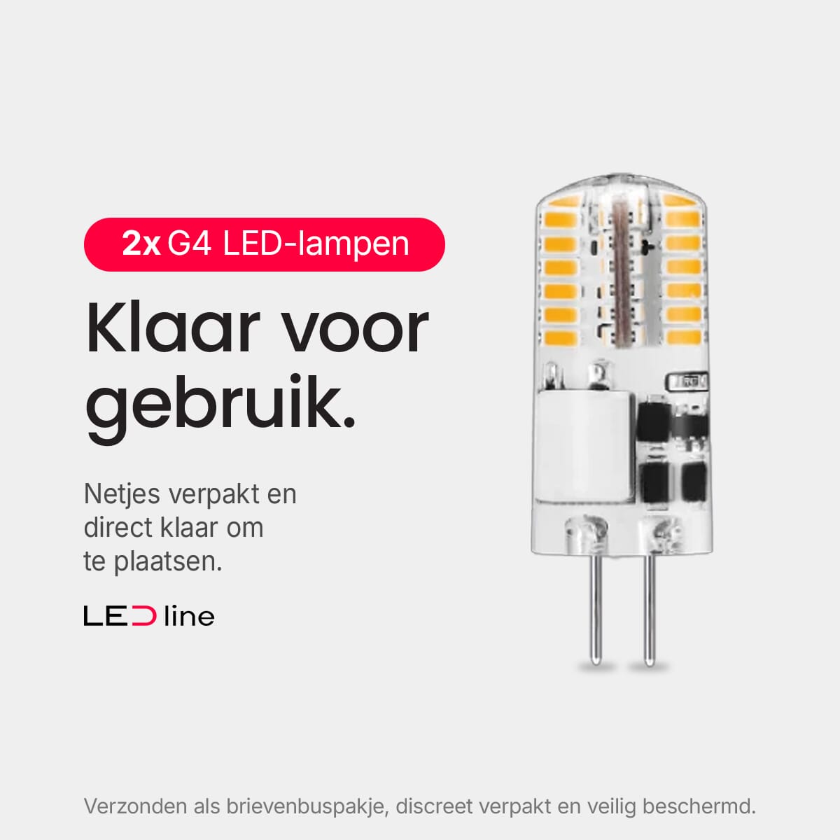 De LED line LITE LED Insteeklamp G4 is ontworpen met energie-efficiëntie in gedachten. Met een verbruik van slechts 2W bespaart deze lamp aanzienlijk op energiekosten in vergelijking met traditionele halogeenlampen van 20W.
