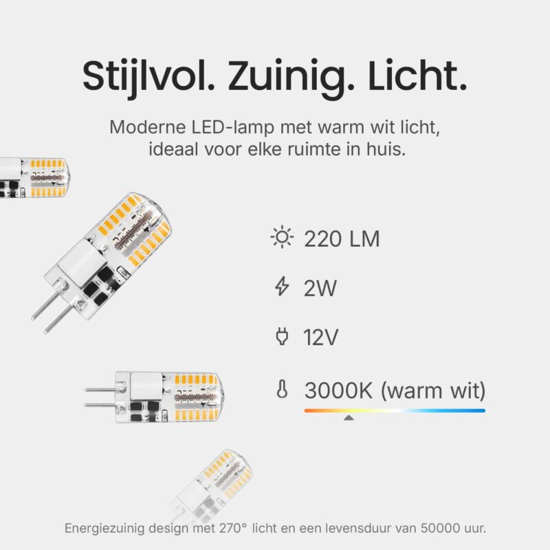 De LED line LITE LED Insteeklamp G4 verbruikt slechts 2W, wat aanzienlijk minder is dan de traditionele 20W halogeenlampen die hij vervangt. Dit maakt hem een uitstekende keuze voor wie energie wil besparen zonder in te boeten op lichtkwaliteit.