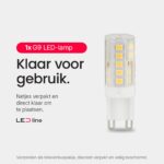 De LED line LITE LED Insteeklamp G9 is eenvoudig te installeren dankzij de standaard G9 fitting. Dit maakt het vervangen van oude lampen snel en probleemloos, zonder dat er extra gereedschap nodig is.
