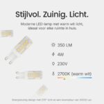 De LED line LITE LED Insteeklamp G9 is ontworpen met energie-efficiëntie in gedachten. Met een verbruik van slechts 4W bespaart deze lamp aanzienlijk op energiekosten in vergelijking met traditionele 30W lampen.