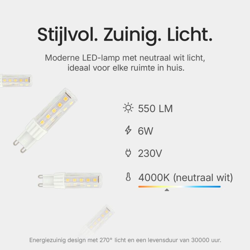 De LED line LITE LED Insteeklamp G9 is ontworpen met energie-efficiëntie in gedachten. Met een verbruik van slechts 6W bespaart deze lamp aanzienlijk op energiekosten in vergelijking met traditionele 50W lampen.