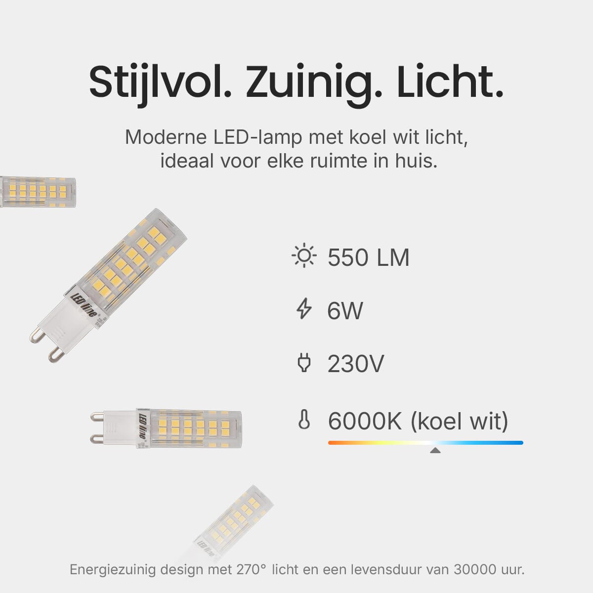 De LED line LITE LED Insteeklamp G9 is ontworpen met energie-efficiëntie in gedachten. Met een verbruik van slechts 6W bespaart deze lamp aanzienlijk op energiekosten in vergelijking met traditionele 50W lampen.