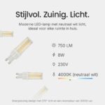 De LED line LITE LED Insteeklamp G9 is ontworpen met energie-efficiëntie in gedachten. Met een verbruik van slechts 8W biedt deze lamp een aanzienlijke energiebesparing in vergelijking met traditionele 60W lampen, wat resulteert in lagere energiekosten.