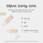 De LED line LITE LED Insteeklamp G9 is ontworpen met energie-efficiëntie in gedachten. Met een verbruik van slechts 8W biedt deze lamp een aanzienlijke energiebesparing in vergelijking met traditionele 60W lampen, wat resulteert in lagere energiekosten.