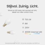 Met een lichtopbrengst van 720 lumen biedt de LED line LITE LED Kaarslamp helder en consistent licht, ideaal voor zowel functionele als sfeerverlichting. De lamp is geschikt voor gebruik in woonkamers, slaapkamers, en andere ruimtes waar helder licht gewenst is.