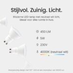 Ondanks het lage energieverbruik levert de LED spot een indrukwekkende lichtopbrengst van 450 lumen. Dit maakt het een ideale keuze voor ruimtes waar helder en consistent licht gewenst is.