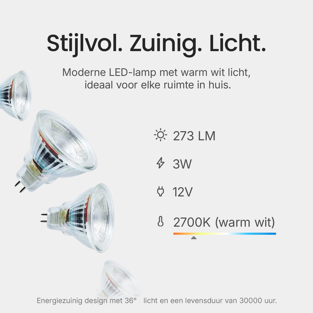 Ondanks het lage energieverbruik levert de LED spot een indrukwekkende lichtopbrengst van 273 lumen. Dit maakt het een uitstekende keuze voor ruimtes waar helder en gericht licht gewenst is.