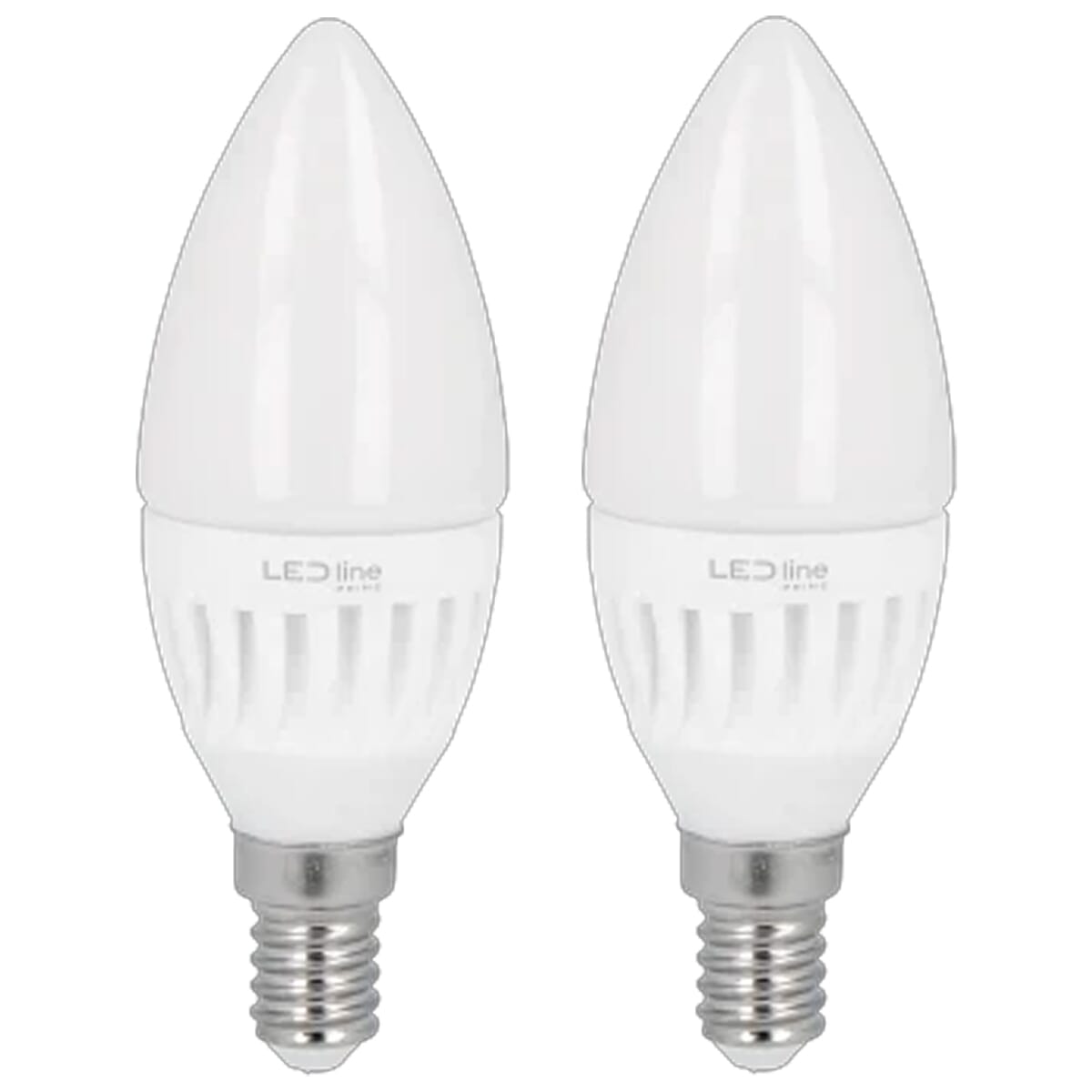 De LED line PRIME LED Kaarslamp C37 E14 is een energiezuinige lichtbron die ontworpen is om traditionele 60W gloeilampen te vervangen. Met een vermogen van slechts 5W biedt deze lamp een lichtopbrengst van 700 lumen, wat zorgt voor een heldere en efficiënte verlichting. De lamp heeft een diameter van 37mm en werkt op een standaard 230V aansluiting, waardoor hij geschikt is voor diverse armaturen in huis.
