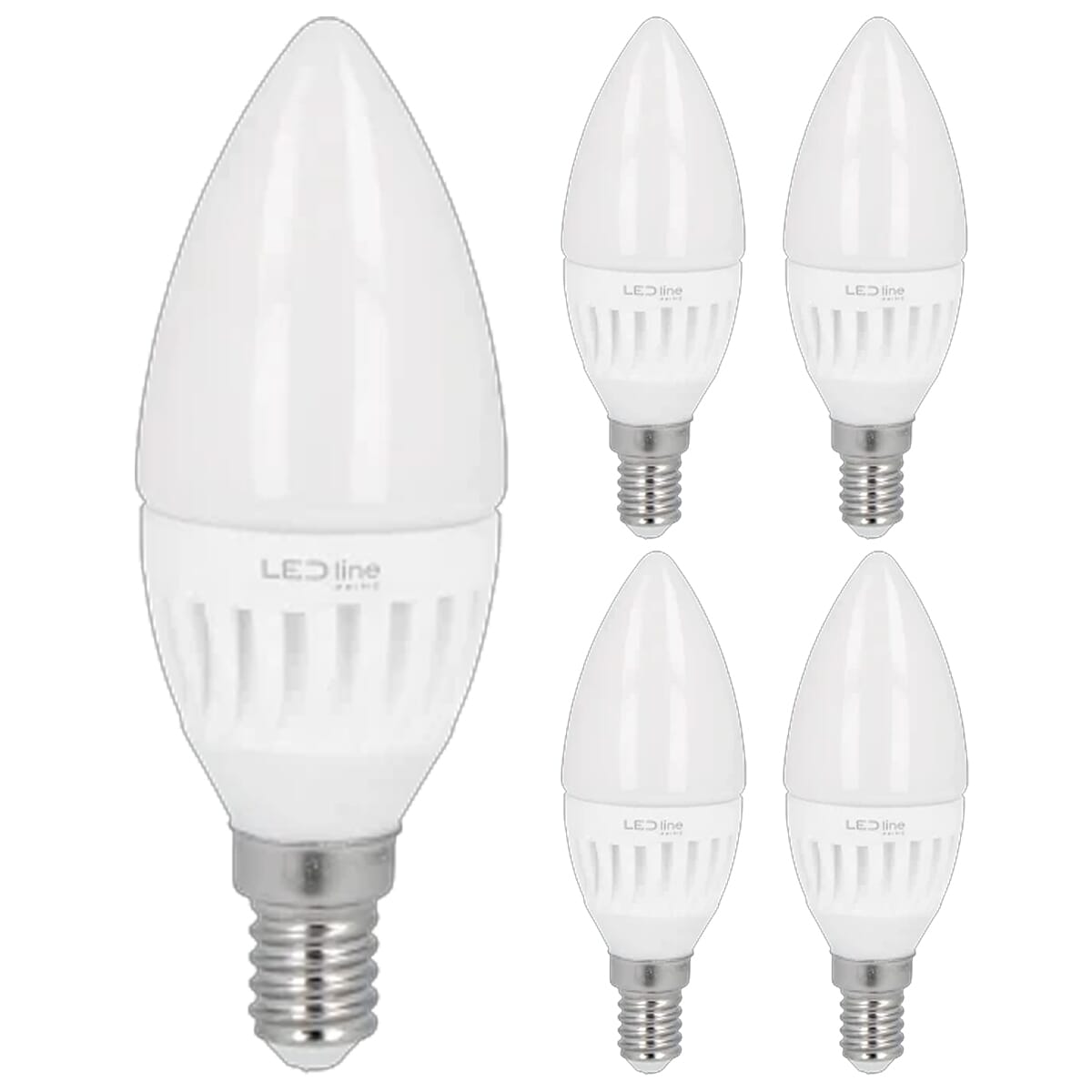 De LED line PRIME LED Kaarslamp C37 E14 is een energiezuinige lichtbron die ontworpen is om traditionele 60W gloeilampen te vervangen. Met een vermogen van slechts 5W biedt deze lamp een lichtopbrengst van 700 lumen, wat zorgt voor een heldere en efficiënte verlichting. De lamp heeft een diameter van 37mm en werkt op een standaard 230V netspanning, waardoor hij geschikt is voor diverse toepassingen in huiselijke en commerciële omgevingen.