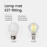 De lamp is voorzien van een E27 fitting, wat betekent dat hij eenvoudig in de meeste standaard armaturen kan worden geplaatst zonder dat er aanpassingen nodig zijn.