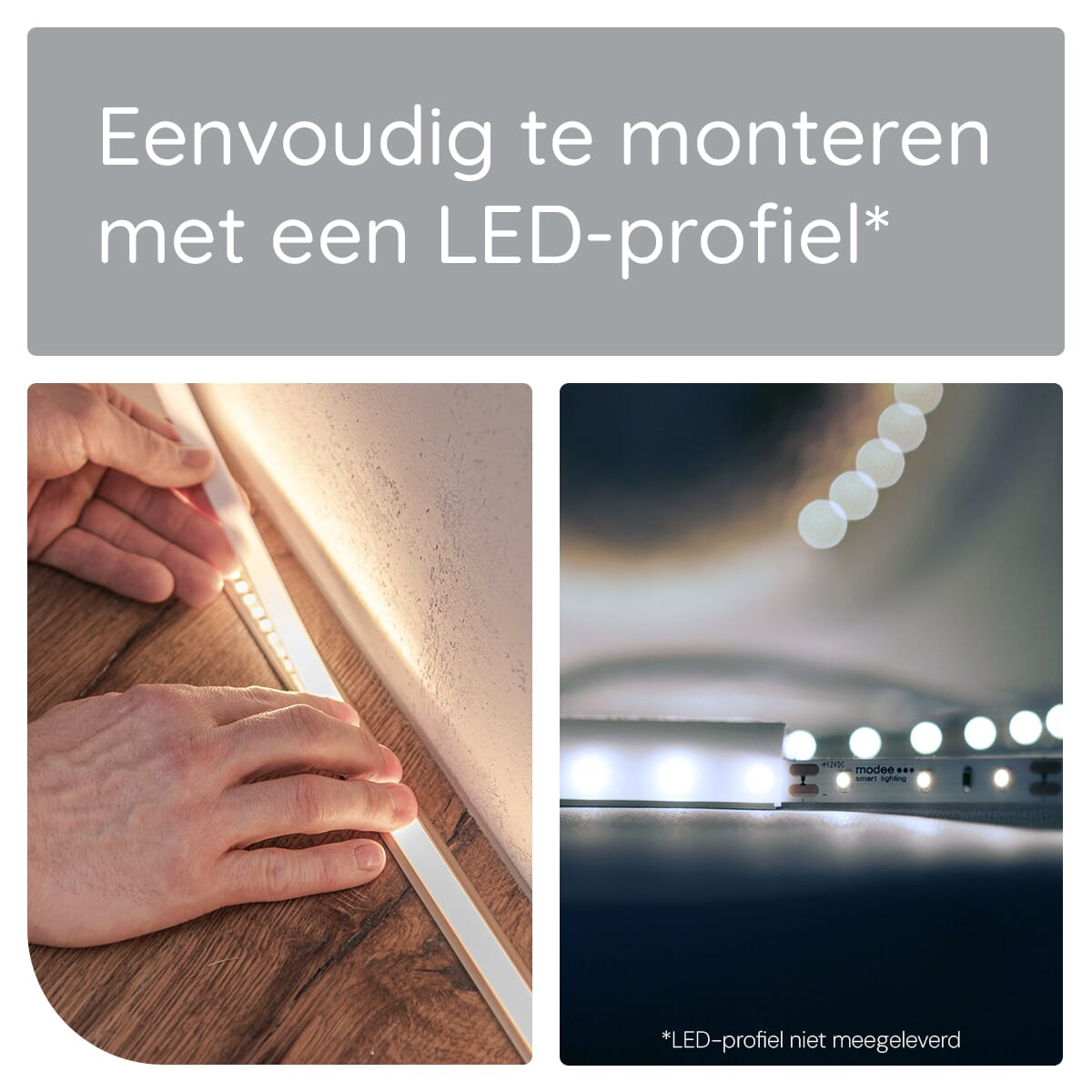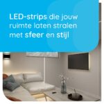 - Eenvoudige installatie: Dankzij de zelfklevende achterkant is het aanbrengen van de LED-strip kinderspel. Je hebt geen extra gereedschap nodig, wat het een ideale oplossing maakt voor snelle verlichtingsprojecten. De strip is uitbreidbaar.