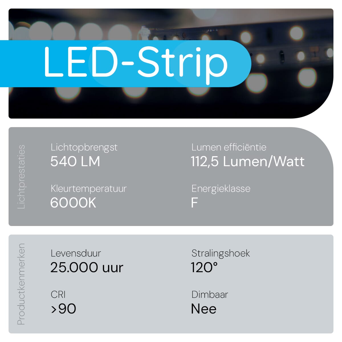 - Lichtstroom: 540 lumen per meter, 2700 lumen in totaal