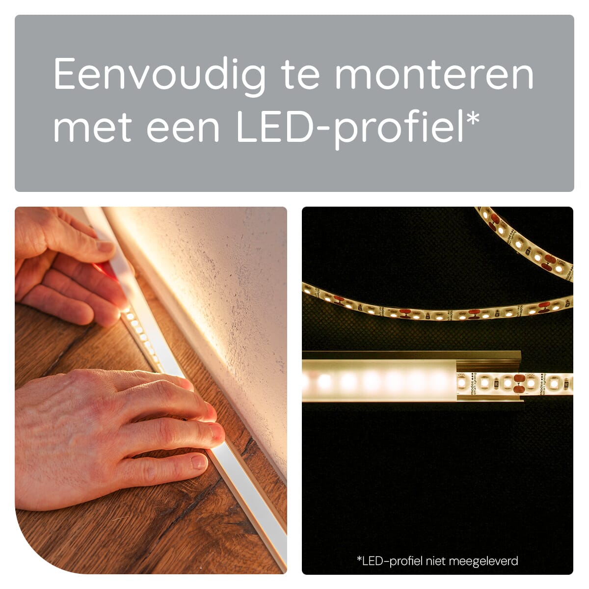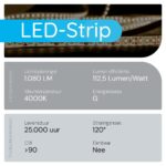 - Hoge lichtopbrengst: Met 1080 lumen per meter en een totale lichtstroom van 5400 lumen, biedt deze ledstrip een krachtige verlichting.
