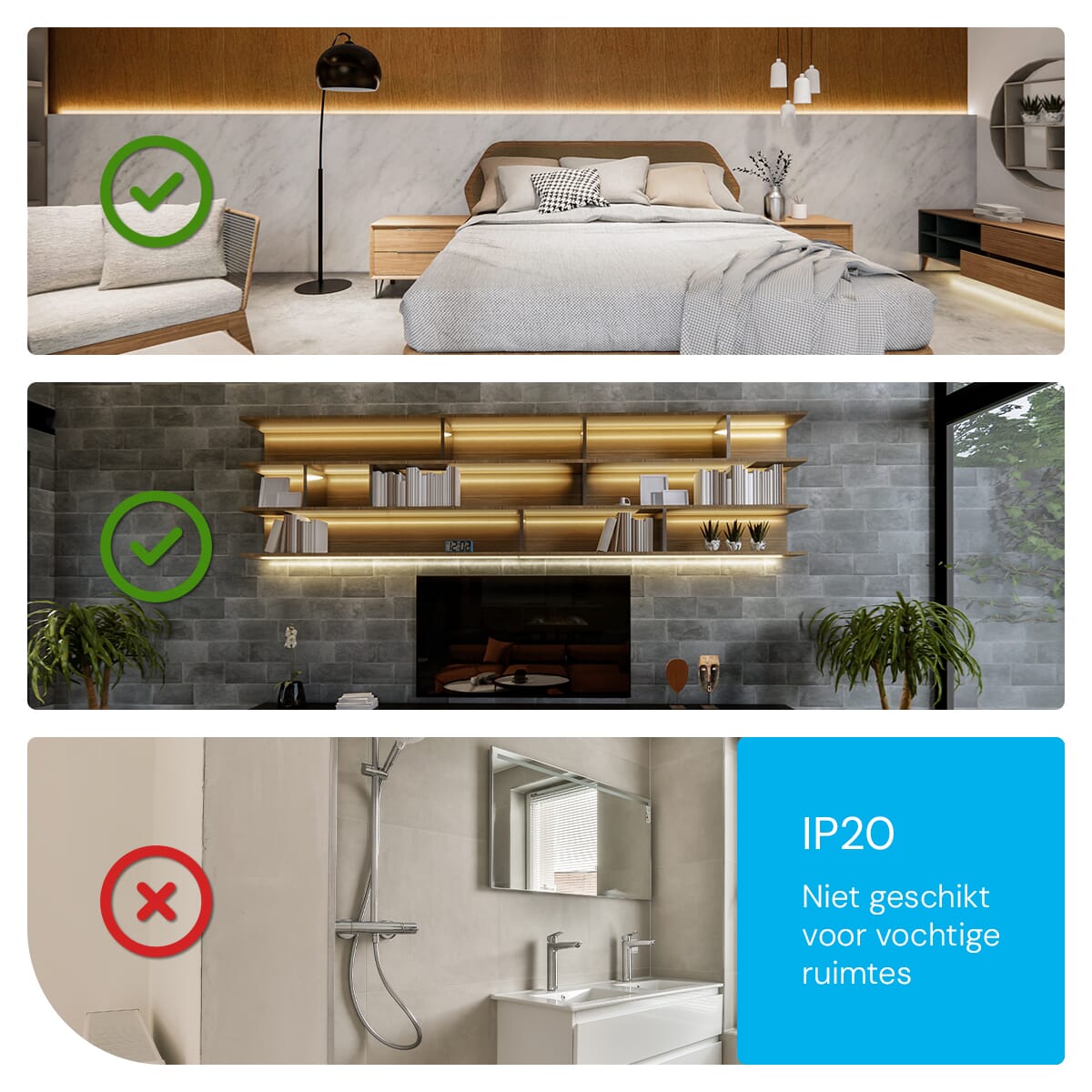 Met een CRI van 90 biedt deze ledstrip een uitstekende kleurweergave, wat betekent dat de kleuren in je interieur levendig en natuurgetrouw worden weergegeven. Dit maakt deze ledstrip uitermate geschikt voor plekken waar kleurgetrouwheid belangrijk is, zoals in keukens of werkruimtes.