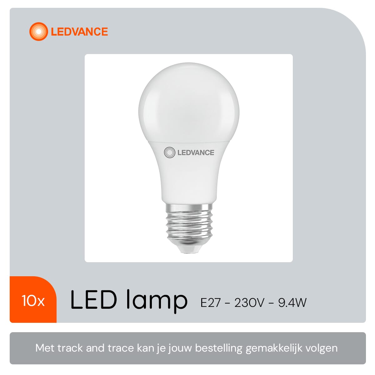 De Ledvance LED Classic Frosted Peerlamp E27 is een energiezuinige lichtbron die ontworpen is om traditionele 60W gloeilampen te vervangen. Deze LED peerlamp heeft een vermogen van 9.4W en levert een lichtopbrengst van 806 lumen met een warme kleurtemperatuur van 2700K. De lamp is voorzien van mat glas en heeft een diameter van 60mm, waardoor het een ideale keuze is voor plafondlampen en andere armaturen.
