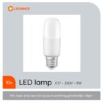 De Ledvance LED Classic Stick Lamp E27 is een energiezuinige verlichtingsoplossing die ideaal is voor gebruik in keukens, kantoren en werkruimtes. Deze LED staaflamp biedt helder, neutraal wit licht met een kleurtemperatuur van 4000K, wat zorgt voor een aangename en functionele verlichting. Met een vermogen van 8W en een lichtopbrengst van 806 lumen, is deze lamp een efficiënte vervanging voor traditionele gloeilampen.