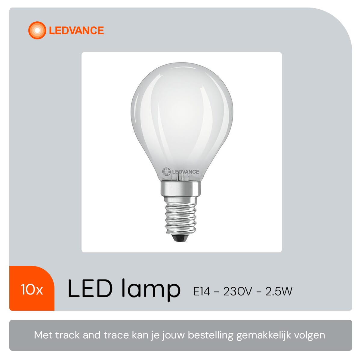 De Ledvance LED Filament Kogellamp E14 is een energiezuinige lichtbron die ideaal is voor gebruik in nachtlampen, hotels en slaapkamers. Met een vermogen van 2.5W en een lichtopbrengst van 250 lumen, biedt deze lamp een warm wit licht van 2700K. De lamp is voorzien van mat glas en heeft een diameter van 45mm, waardoor het een subtiele en stijlvolle toevoeging is aan elk interieur.