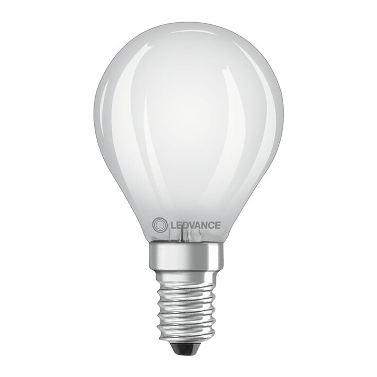 De Ledvance LED Filament Kogellamp E14 is een energiezuinige lichtbron die ideaal is voor gebruik in nachtlampen, hotels en slaapkamers. Met een vermogen van 2.5W en een lichtopbrengst van 250 lumen, biedt deze lamp een warm wit licht van 2700K. Het matte glas en de compacte diameter van 45mm maken het een veelzijdige keuze voor diverse toepassingen.