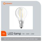 De Ledvance LED Filament Kogellamp E14 biedt een efficiënte en stijlvolle verlichtingsoplossing voor diverse toepassingen in huis.